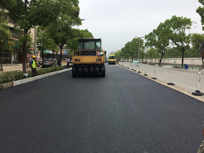 第一段道路机动车道沥青调平层及下面层摊铺完成,全幅16米,长1500米,共24000平方米。第二段道路两侧慢车道沥青下面层摊铺完成,宽5米,长800米,共8000平方米。摊铺道路进行全封闭施工,项目部提前策划变道交通方案,并向沿街商铺及小区、车辆发放《道路施工临时交通方案变更告知书》,以便周边居民及时了解路况,安排好出行路线。