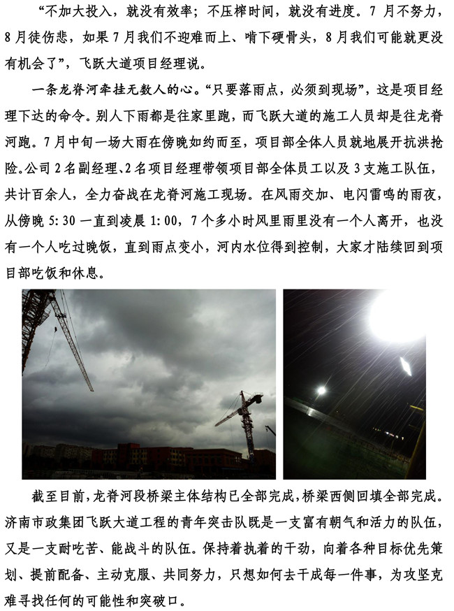 保持执着干劲 逆境寻找出路——济南市飞跃大道道路建设工程龙脊河桥梁主体结构全部完成