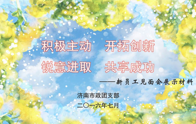 7月20日上午,济南市市政工程有限公司团委举办新员工见面交流会,热烈欢迎新员工的到来。团委书记为新员工展示了团组织的建设,工作的开展情况,近6年来组织的各项志愿服务活动、岗位练兵及团员们的工作、学习情况,团支部今后的工作重心、发展方向。希望今后新员工积极主动、开拓创新,踏实、努力地学习与工作,为团支部的各项工作献计献策、充分发挥自己的才能,踊跃参加团的各项活动,为公司团支部注入新的活力。