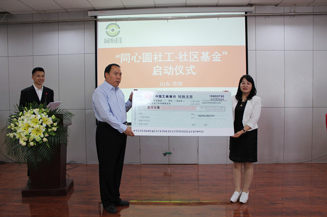 5月27日,由济南市同心圆社会组织服务中心举办的“同心圆社工·社区基金”揭牌仪式在济南市市中区四里村街道办事处四楼会议室举行。“同心圆社工·社区基金”作为民政部“中社社会工作发展基金会”在全国按区域选择的十家重点合作机构之一,是目前省内惟一一个具备免税资质的非公募基金。“社区基金”作为全国性的公益资源平台,能有效撬动社会资源,为社会工作本土化、持续化发展提供有效保障。
