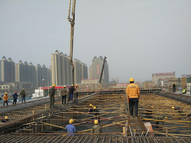 3月12日,济南市市政工程有限公司承建的快速路三标70联箱梁开始一步砼浇筑,这是节后本标段浇筑的首联箱梁,混凝土用量约为1250m3。